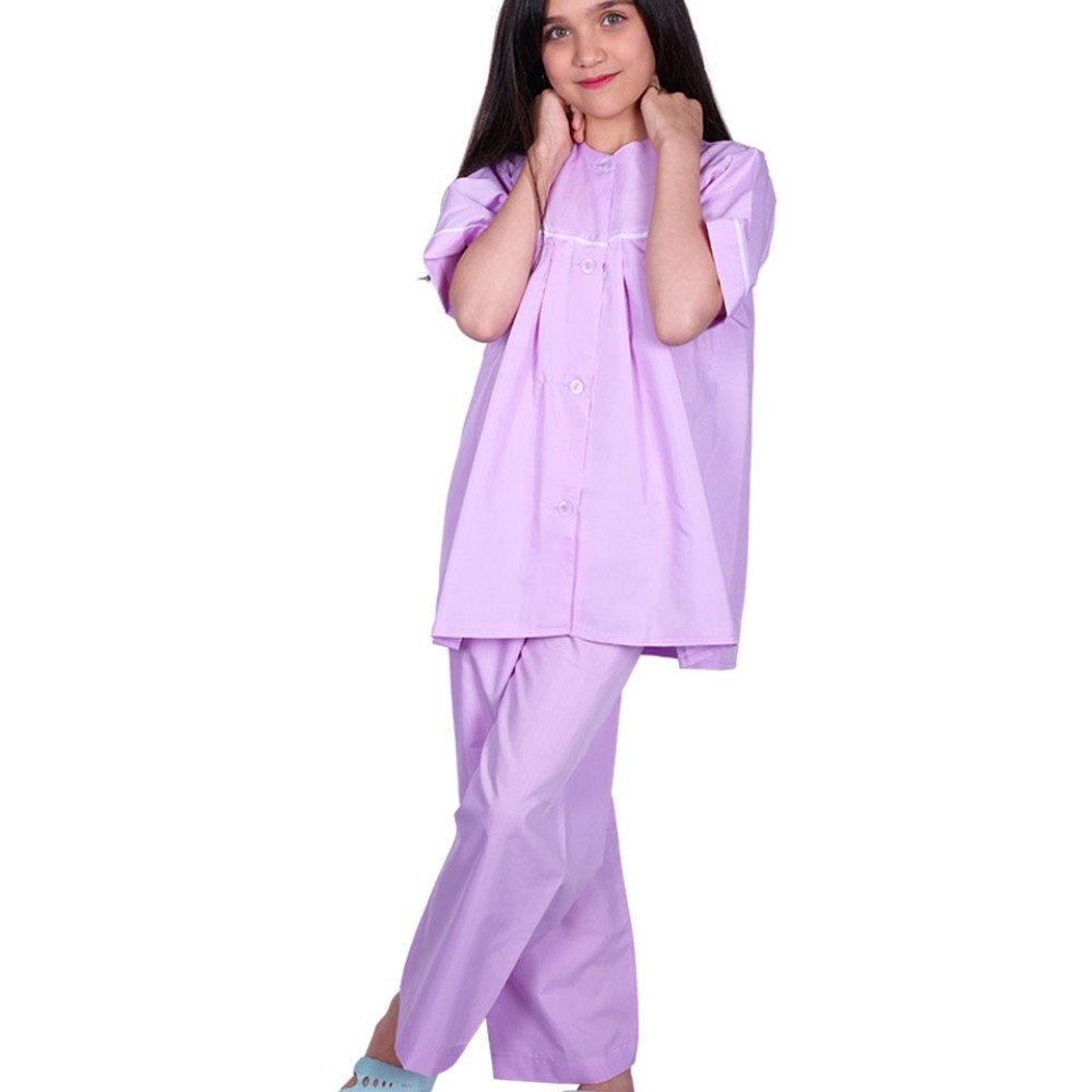 لباس پارچه ای بیمارستانی بچگانه مدل K-302 با طراحی راحت و رنگ های شاد یاسی ، صورتی ، آبی و سبز فضایی دلپذیر تر برای کودکان در محیط درمانی ایجاد می کند. این لباس ها با پارچه تترون ساده و طراحی یقه گرد و دوخت تمیز راحتی و آزادی حرکت را برای کودکان فراهم می سازد.ترکیب نخ پلی استر ویسکوز در تار و فلامنت در پود موجب سبکی و دوام بالا در استفاده های روزمره شده است.مجموعه نهال طب به عنوان یکی از کهن ترین و با کیفیت ترین تولید کنندگان در حوزه انواع لباس های پارچه ای بیمارستانی بچگانه در بین بیمارستان ها، کلینیک ها، مراکز درمانی و جامعه سلامت و درمان کشور شناخته شده است.
